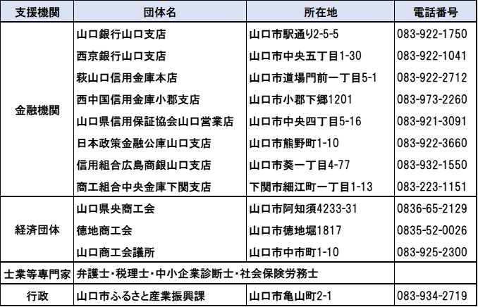 また、山口県央連携都市圏域内の5つの商工会議所(山口、宇部、防府、萩、山陽)と5つの商工会(山口県央、徳地、くすのき、美祢市、萩・阿西)が連携協力を締結し、事業承継支援事業を広域で実施しています。